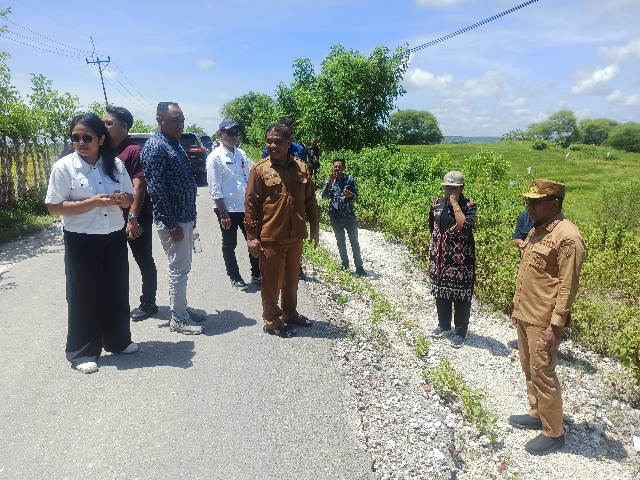 Didampingi Karo Hukum Setda Provinsi NTT Odermaks Sombu, Sekretaris Dinas PUPR Provinsi NTT, Wakil Bupati Rote Ndao Apremoi Dethan, serta Plt. Asisten Pemerintahan dan Kesra Setda Kabupaten Rote Ndao Petson Hangge, Wagub meninjau lokasi pertama di Letelangga, Kecamatan Lobalain.